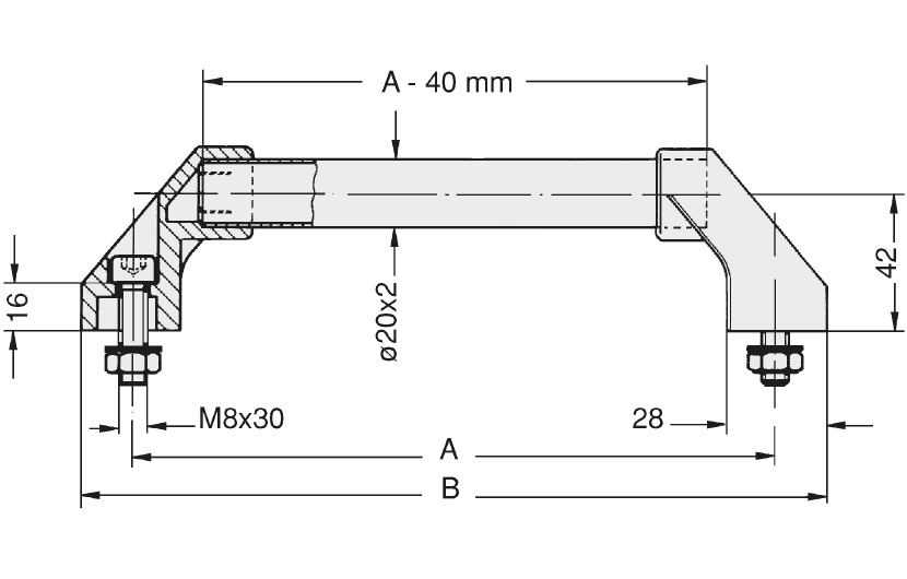 | 10547 | POIGNEE DB ALU ENTR600 D.20 VIS M8 REVET | 600 | 630 | 322 |