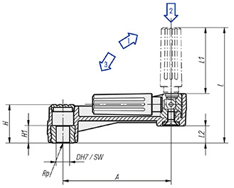 | REF | DÉSIGNATION | A | A1 | B | DH7 | H | H1 | L | L1 | L2 | SW | Poids (g) | 3D | Devis |